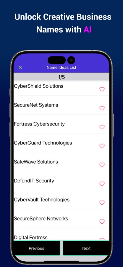 • Save and Favorite: Save your favorite business names for future reference or to compare with other ideas.