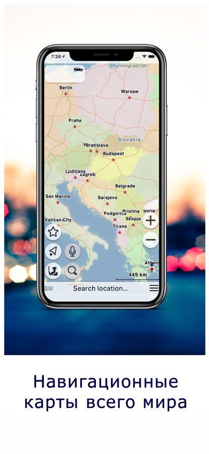GPS навигатор с пробками, информацией о радарах и высокодетализированными картами всего мира.