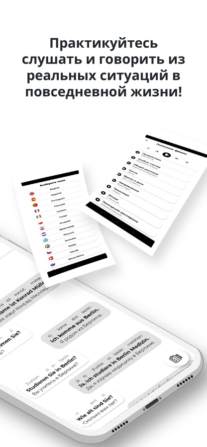 «Учить Немецкий язык — Слушать и Говорить» одно из развивающихся приложений PORO для самообучающихся, желающих легко и эффективно общаться на немецком языке. 115 повседневных диалогов, список уроков с различной тематикой от приветствия, совершения покупок, работы, семейного разговора … Подходит для всех изучающих Немецкий язык − от начинающего до среднего и продвинутого уровней, для практики общения на немецком языке.