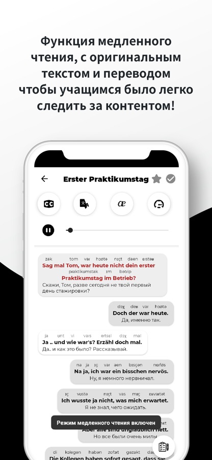 — Режим, в котором предложения подсвечиваются со звуком, поможет вам следить за разговором напрямую.