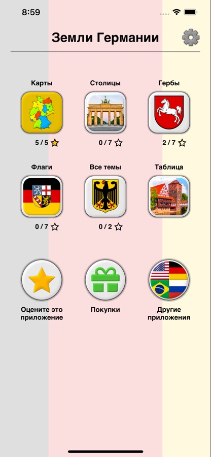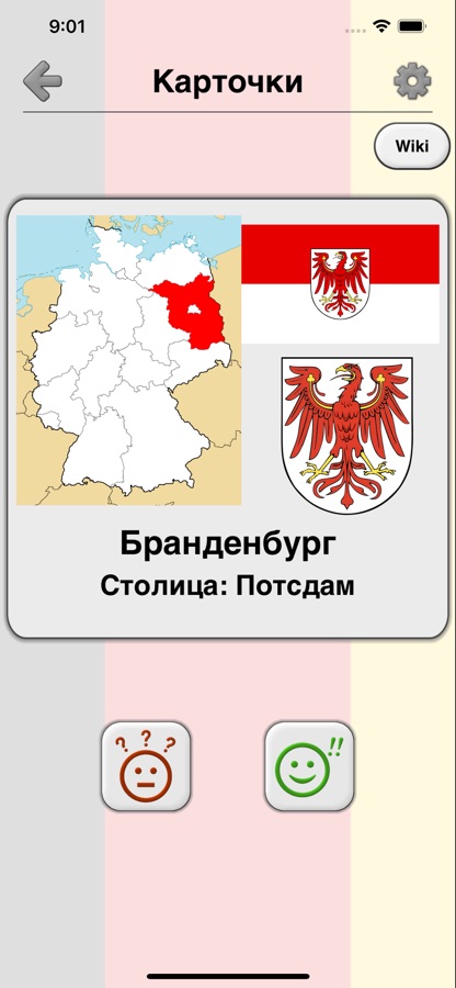 Приложение переведено на 9 языков, включая русский и немецкий, поэтому Вы можете выучить названия федеральных земель Германии на любом из этих языков.