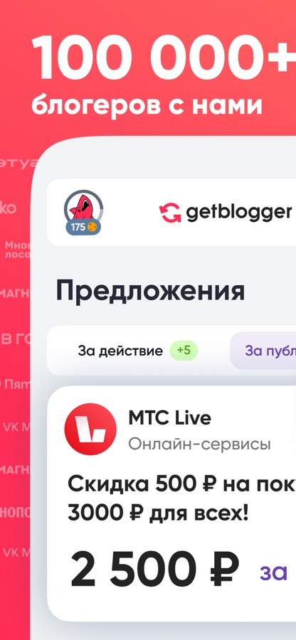Сотни эксклюзивных предложений от лучших рекламодателей России ждут тебя на Getblogger. Зарабатывай на любимом деле без посредников и комиссий с помощью удобного мобильного приложения.