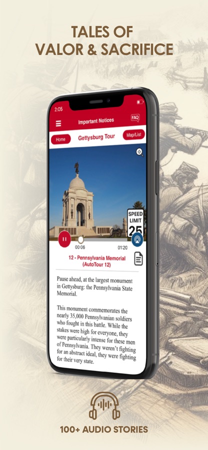 Скачайте приложение Gettysburg Battle Auto Tour для iOS бесплатно - последняя версия (3.6) уже доступна для установки на ваш iPhone или iPad.