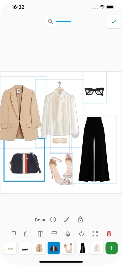 – Редактор комплектов — перетаскивайте, наслаивайте и масштабируйте вещи на холсте для создания стильных коллажей