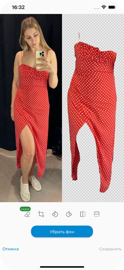 – Удаление фона с помощью ИИ — сфотографируйте вещь, и нейросеть удалит даже самый сложный фон