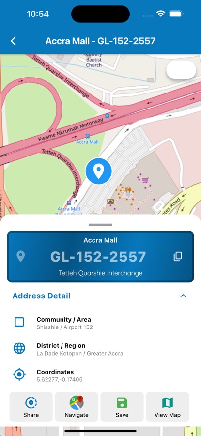 GhanaPostGPS is integrated with Google maps to allow for easy navigation of a particular area, detailing major road networks and other landmarks