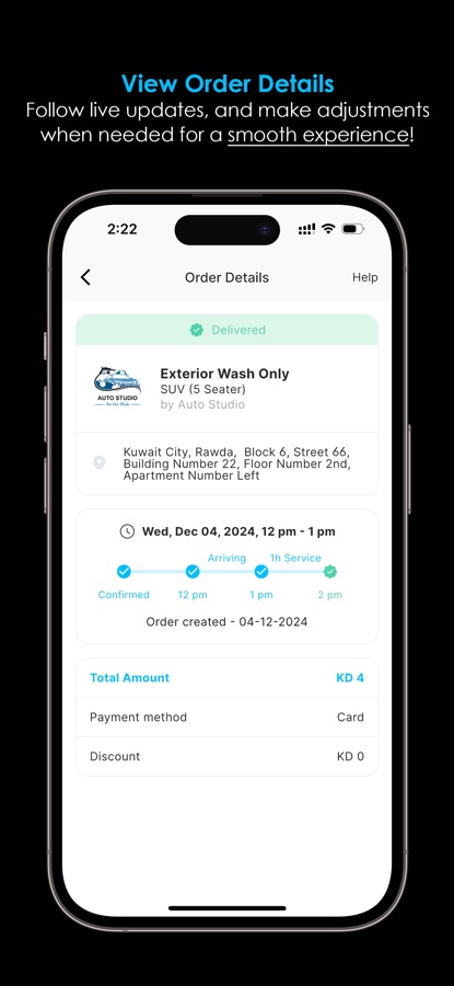 اطلب الآن خلال ثواني وادفع بالبطاقة أو نقداً بعد إتمام الخدمة ووفر وقتك للحصول على يوم مريح.
