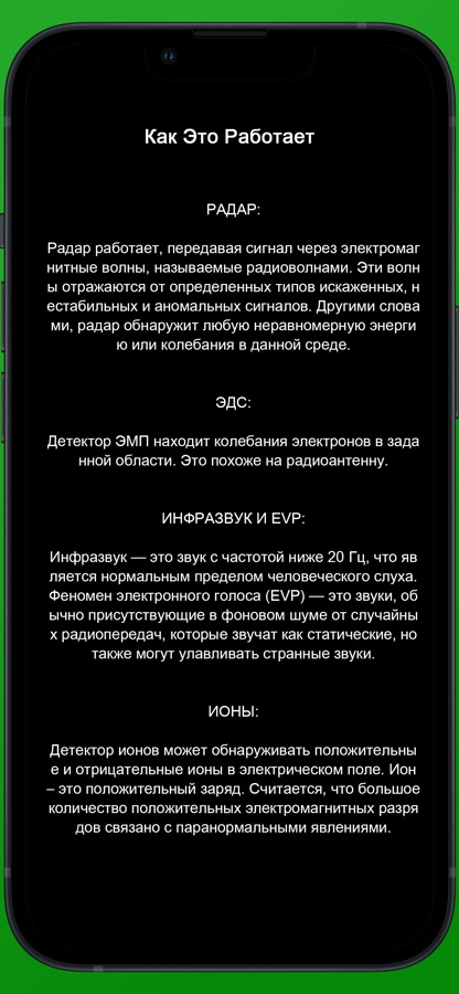 Это приложение имитирует четыре наиболее важные технологии для обнаружения паранормальных явлений.