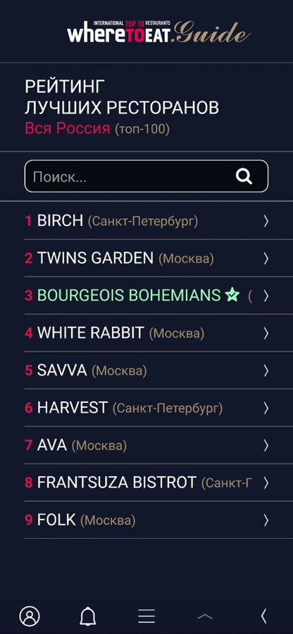 Отдельно в приложении отмечены лучшие шеф-повара и бары каждого региона и всей страны отдельно.