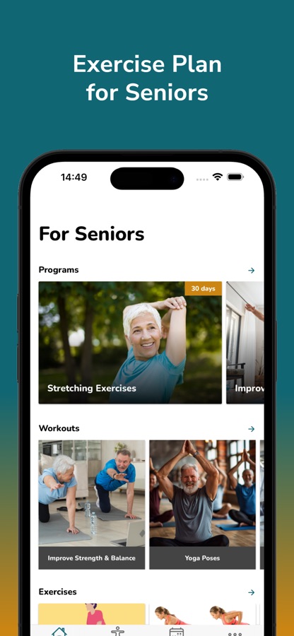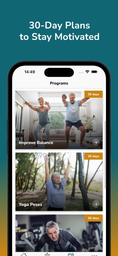 This app contains physical activity guidelines for older adults, aged 65 and over, for general health and fitness, including simple workouts and programs for building exercise into your day. Doing exercises to improve your strength, balance and flexibility will help make you stronger and feel more confident on your feet.