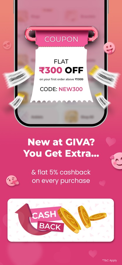 • Recharge your GIVA wallet and get upto 10% cashback!