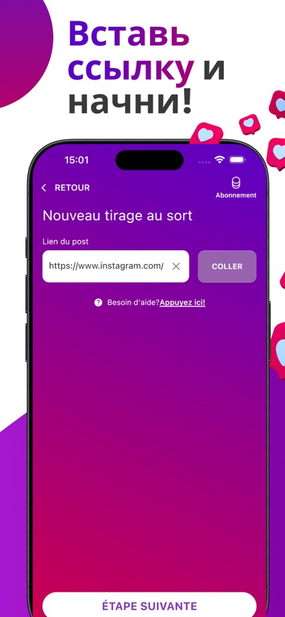 Откройте приложение и вставьте ссылку на любой пост, комментарии или лайки подписчиков которого вы хотите выбрать, и объявите победителя.