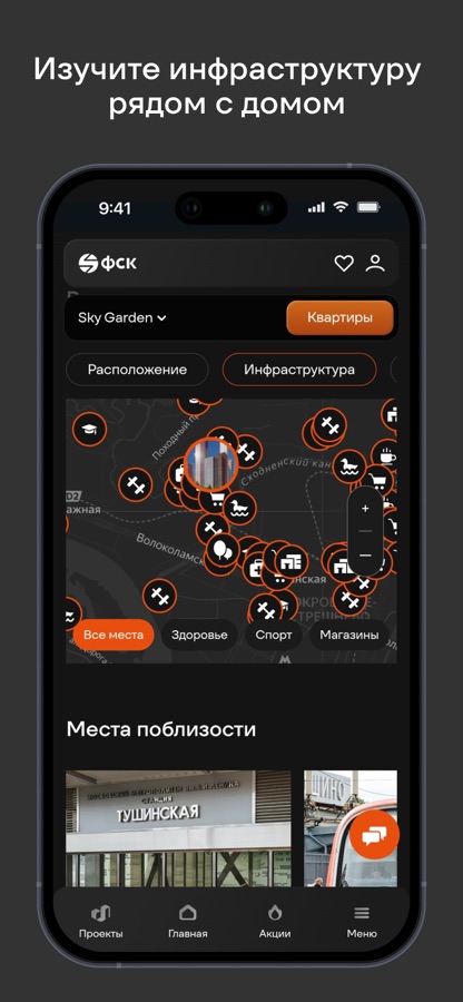 Мобильное приложение группы компаний ФСК – ваш гид по жилым комплексам и апартаментам от крупного надежного застройщика. Узнайте всю информацию о новостройках Москвы и Московской области, Санкт-Петербурга и Ленинградской области, Калуги и Калужской области, а также о действующих акциях и скидках от ГК ФСК. Теперь большие сделки можно совершать и онлайн!