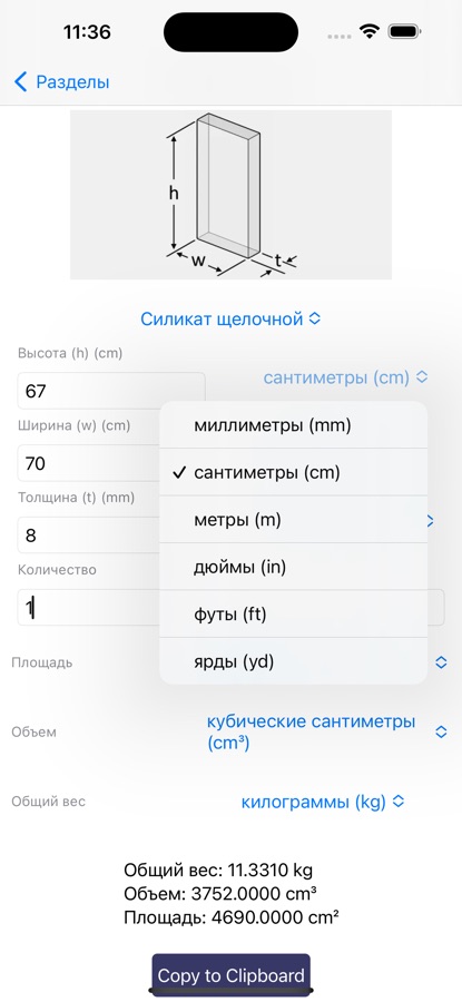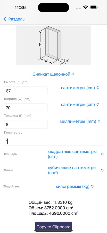 Представляем GlassMate — вашего универсального спутника для всех проектов, связанных с стеклом. Это простое в использовании приложение позволяет не только рассчитывать вес различных типов стекла, но теперь также предоставляет возможность выбора предпочитаемых вами единиц измерения для площади, объема, длины и веса. От миллиметров до ярдов, квадратных миллиметров до футбольных полей, кубических миллиметров до американских галлонов и микрограмм до имперских тонн — выбирайте то, что лучше всего соответствует вашим потребностям!