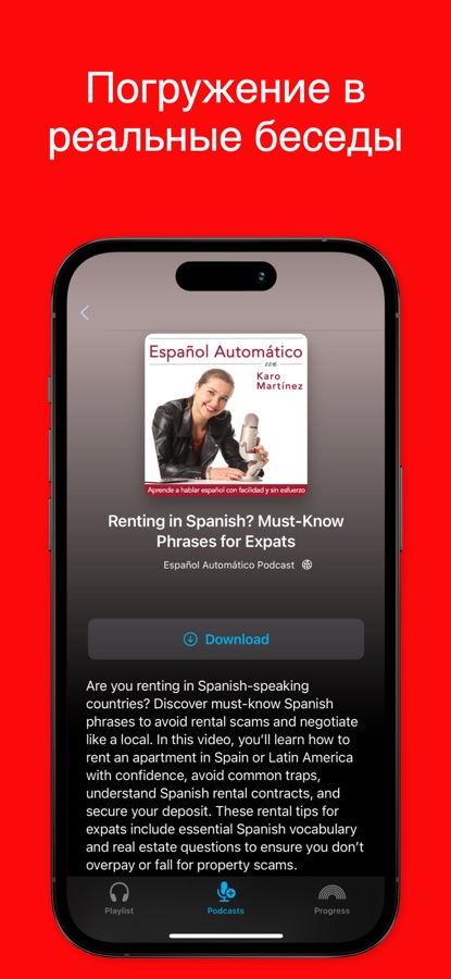 Glisten сочетает подлинные подкасты с руководством языкового курса. Это как личный репетитор в вашем подкаст-плеере.