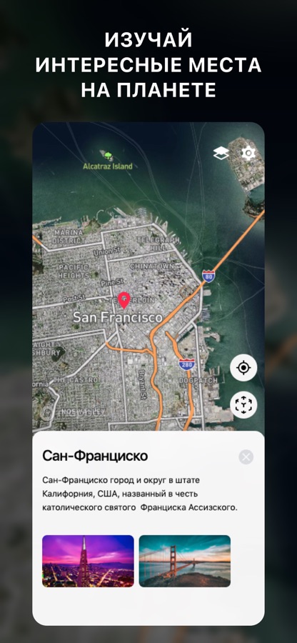 – Интерактивный 3Д-глобус: вращайте, масштабируйте и исследуйте высокодетализированную 3Д-модель Земли. Насладитесь виртуальным туром в любое место, куда бы ни позвало вас сердце.