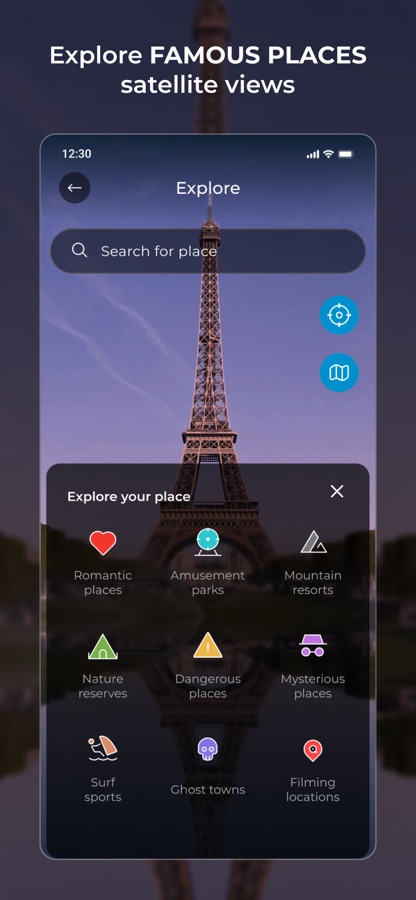 Близлежащие места — ещё одна полезная функция карт Earth Live, позволяющая пользователям в любой момент увидеть близлежащие места. Карты Земли и спутниковые снимки также доступны для близлежащих мест. Сохраните эти живые HD-карты Земли на своем устройстве и наслаждайтесь многочисленными функциями в одном приложении, включая спутниковые снимки, спидометр и отслеживание местоположения.