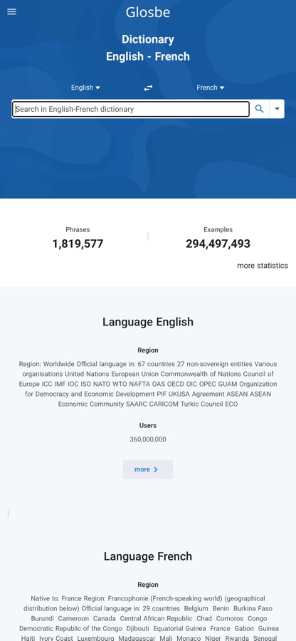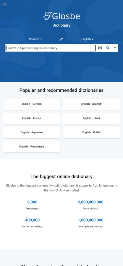 Install our App and join the most amazing dictionary project ever. You can also use it online at https://glosbe.com .