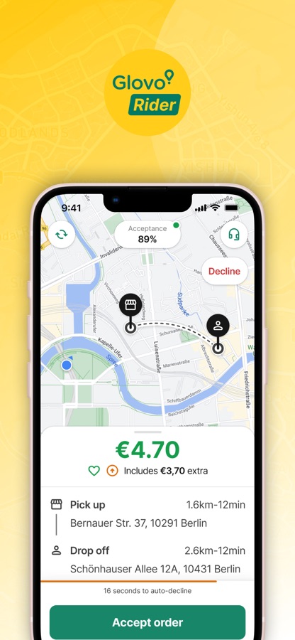 Скачайте приложение Glovo Rider, начните сотрудничество в роли курьера и получайте доход уже сегодня!