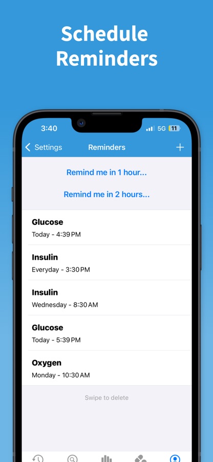 • Schedule reminders to check your blood sugar levels