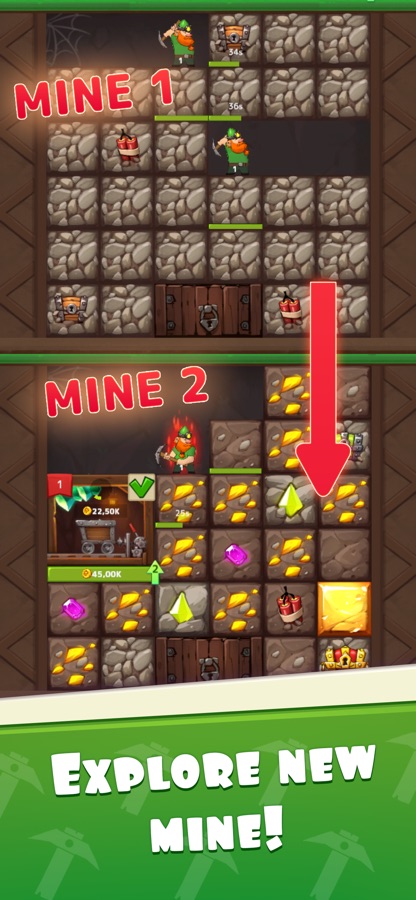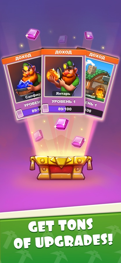 — Собирайте золото бездельников даже в автономном режиме, получайте специальные карты и улучшайте свои шахты.