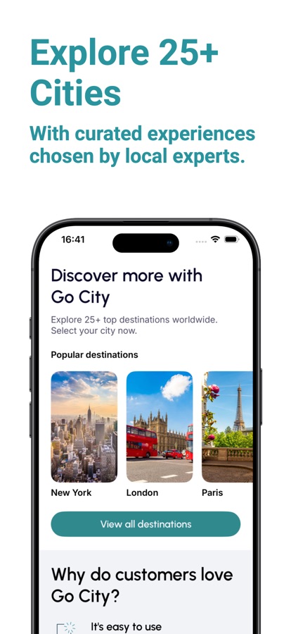 Sightseeing just got easier. With Go City, enjoy the best attractions, experiences and tours a city has to offer, all on one pass. Download the app to explore over 30 destinations, check out our incredible attraction line-up and access your digital pass for easy entry.
