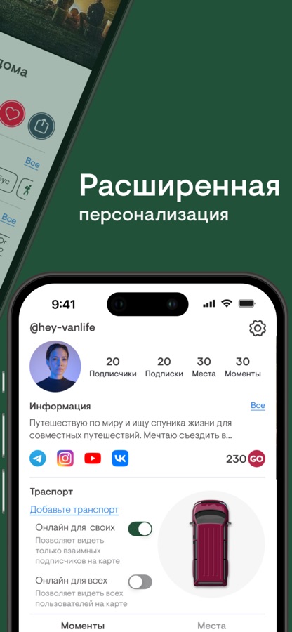 — Персонализируйте ваш аккаунт — иконка вашего авто будет на отображаться карте.
