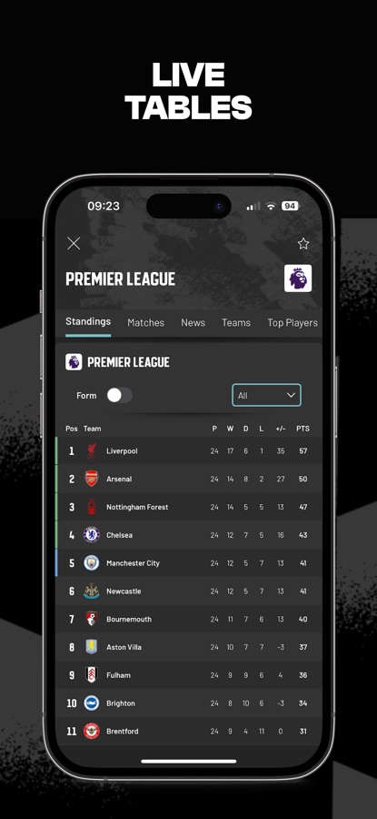 — Tables and Standings: Immediate access to all the latest tables and standings.