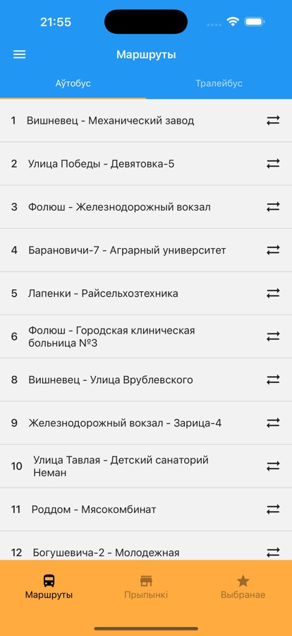 Заранее скачайте данные для вашего города и пользуйтесь расписанием даже без подключения к интернету.