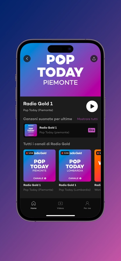 • Radio Gold 1 – Pop Today: la radio in diretta per Piemonte e Lombardia con la musica pop di oggi e degli anni 2000, le News dalle città al minuto :20, lo sport e le rubriche di interesse locale. Anche in Visual Radio.