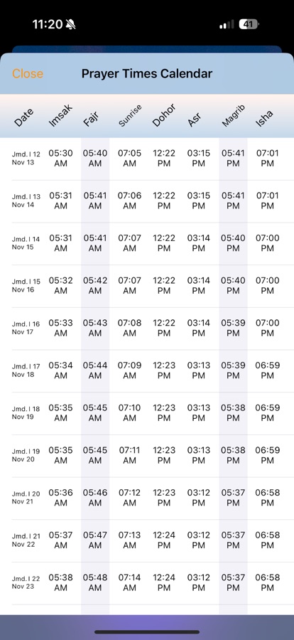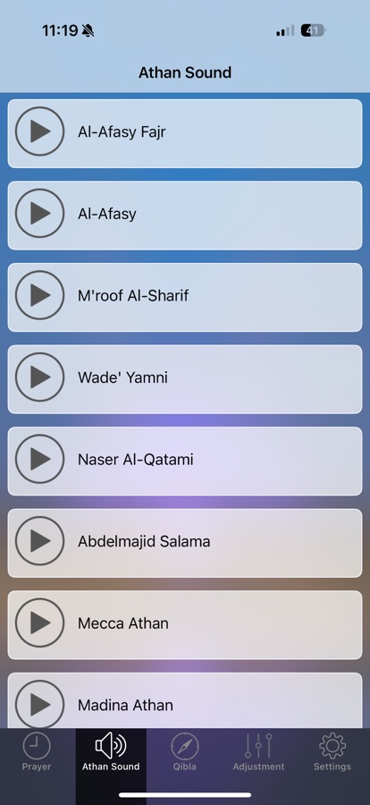 1. The possibility of choosing between Listening to full Athan or simple notice of the exact prayer time.