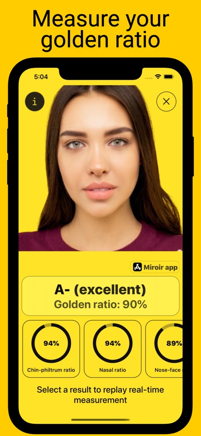 Miroir uses AI to show you how your face is perceived when compared to the golden ratio.
