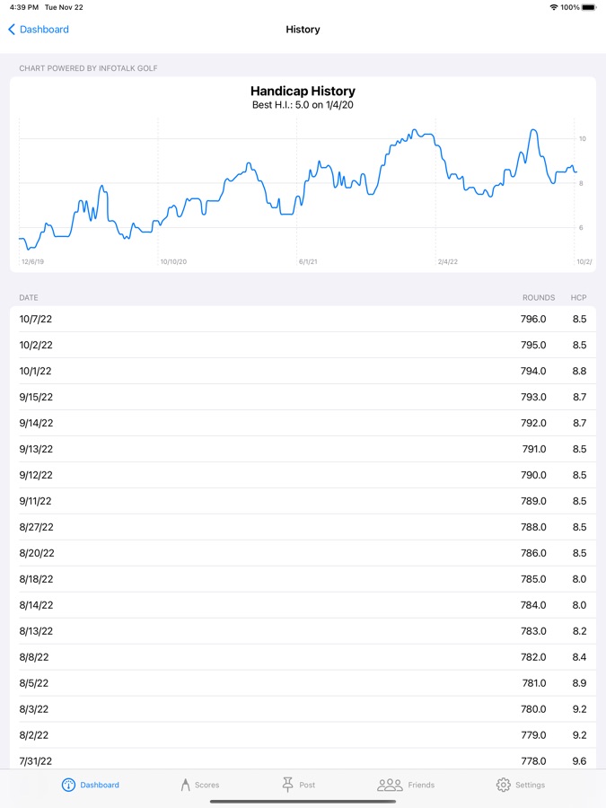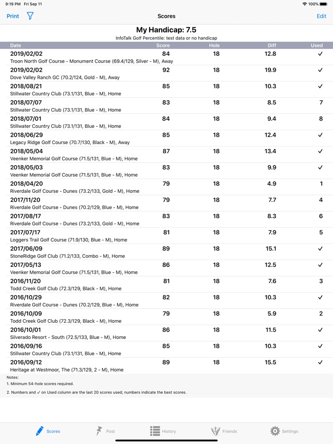 Golf Handicap Annual Membership with advanced handicap tracking features can be purchased from Apple App Store. Payment for in-app upgrades will be charged to your iTunes Account at confirmation of purchase. Subscriptions automatically renew unless auto-renew is turned off at least 24-hours before the end of the current period. Your iTunes Account will be charged for renewal within 24-hours prior to the end of the current period, at the original subscription amount. Subscriptions may be managed by you and auto-renewal may be turned off by going to your iTunes Account Settings after purchase. Any unused portion of a free trial period, if offered, will be forfeited when the user purchases a subscription to that publication. Privacy Policy and Terms of Use are located at: http://www.infotalkcorporation.com/privacypolicy.html