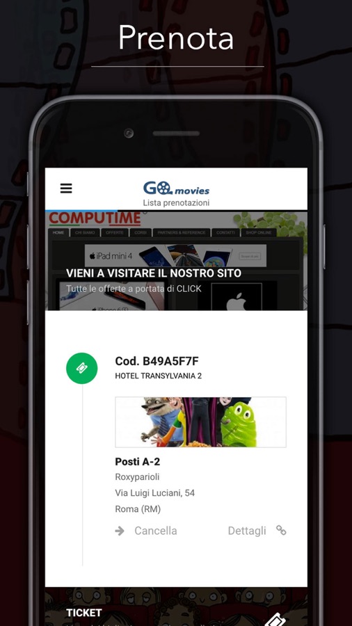 Puoi prenotare il biglietto dei migliori cinema italiani direttamente dal tuo iPhone®: per consultare la lista dei cinema visita http://app.computime.it