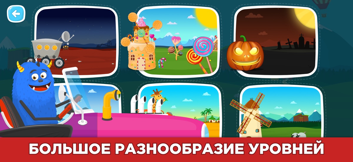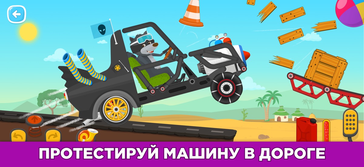Игра прекрасно развивает логику и мышление. Ребёнок с удовольствием будет “работать” в гараже, примеряя к машине новые колёса, фары, дуги, спойлера, крылья и т.д. Большой выбор деталей позволит ребёнку создать уникальную машину и тут же опробовать её на дороге. Реалистичность процесса езды вызовет бурю восторга у юного автомобилиста!