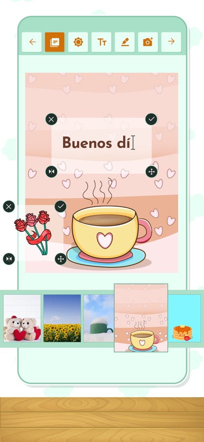 Выберите ту открытку, которая вам больше всего нравится: с цветами, с восходом солнца, может быть, с милым малышом, а может, с хорошим кофе. Или, если хотите, выберите фон без текста и поставьте свой, добавьте стикеры и фотографии или рисуйте пальцем, чтобы нарисовать забавное сообщение.