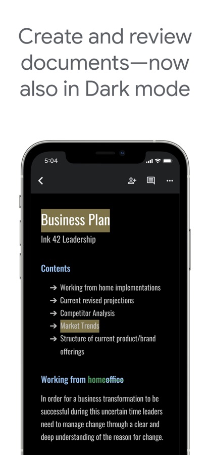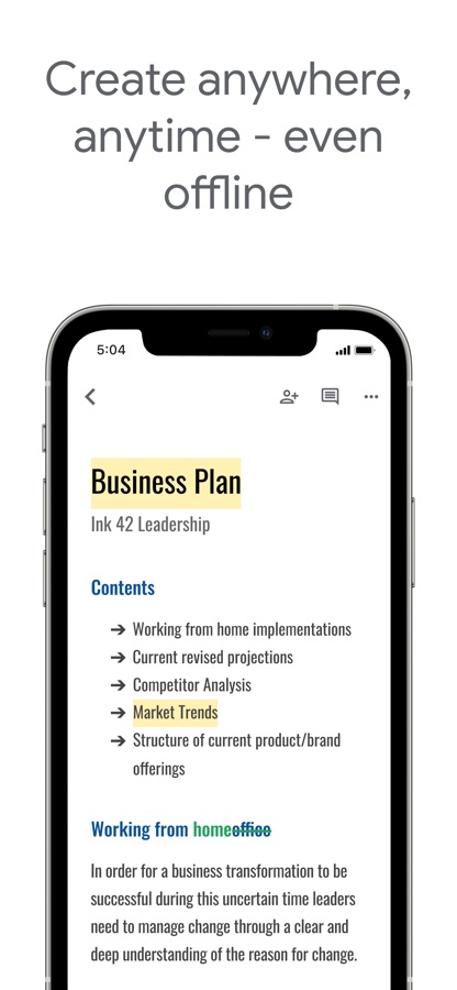 • Создавайте структуры документов, записи блога, резюме встреч и многое другое прямо на мобильном устройстве.