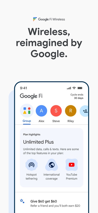 Google Fi Wireless phone plans keep you connected with ultra-reliable 5G coverage, industry-leading security features, and plenty of perks at no extra cost.1