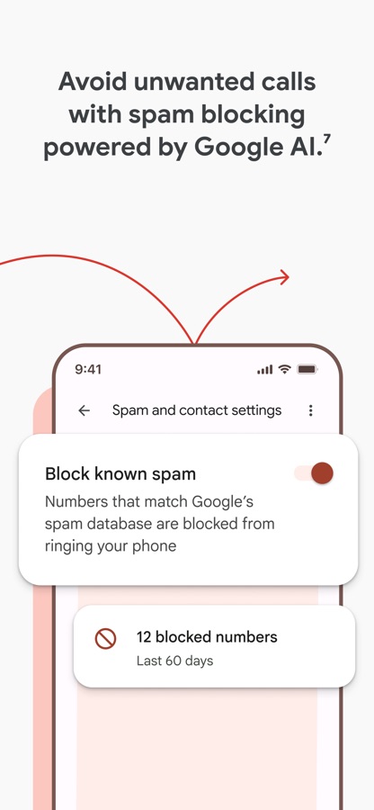 • Advanced spam call blocking powered by Google AI 7