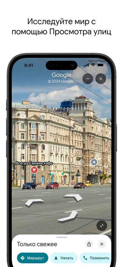 С помощью Google Карты вы можете виртуально прогуляться по незнакомому району до того, как отправиться туда. Режим «Просмотр улиц» (Street View) показывает панорамы с высоты человеческого роста, позволяя рассмотреть перекрёстки, фасады зданий и места для парковки. А функция дополненной реальности «Объектив» (Live View) накладывает стрелки и названия улиц прямо на изображение с камеры вашего iPhone — это особенно полезно, когда нужно сориентироваться на перекрёстке или найти вход в здание. На iPad с большим экраном панорамы выглядят особенно впечатляюще.