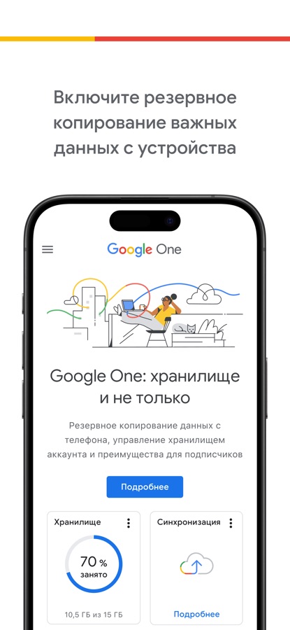 • Создавайте резервные копии фотографий, сообщений, контактов и других данных с ваших устройств. Владельцам аккаунта Google доступно 15 ГБ пространства бесплатно. С Google One вся ваша информация всегда будет под рукой – даже если вы потеряете, разобьете или поменяете телефон.