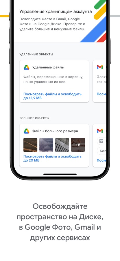• Управляйте файлами и данными из Google Фото, Google Диска и Gmail в одном приложении и освобождайте пространство на диске.