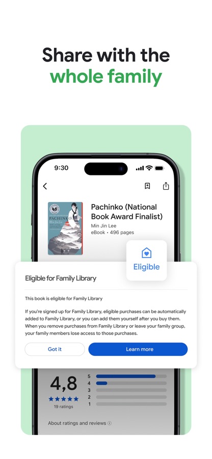 • Библиотека доступна для чтения и прослушивания на телефоне, планшете, компьютере и в автомобиле с Android Auto. Плюс книги можно скачивать для чтения офлайн.