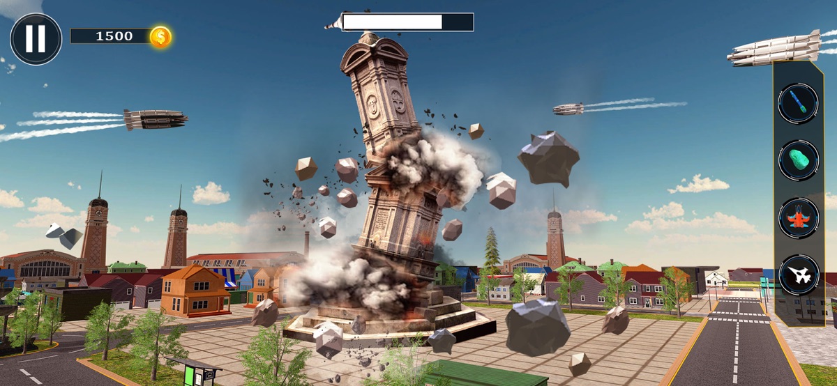 Окунитесь в мир азарта и острых ощущений в этой эпической разрушительной игре, в которой вы станете свидетелем сноса больших зданий города. Не только здания, внутри мегаполиса есть и другие объекты инфраструктуры. Здание окружают ракеты и самолеты, чтобы их уничтожить. Продолжайте атаковать с помощью различных средств, чтобы снести здания. Получите дополнительную дозу адреналина в этой захватывающей и захватывающей разрушительной игре. Окружающая среда игры достаточно интересна, чтобы развлечь вас.