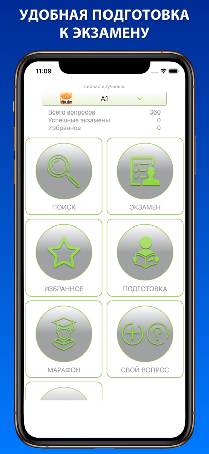 • Работа над ошибками — в режимах «Экзамен», «Марафон» и «Тренировка в избранном» Вы можете сделать работу над ошибками.