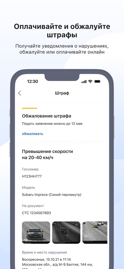 Получайте уведомления о новых штрафах, просматривайте детальную информацию, оплачивайте из приложения