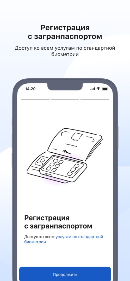 1. С помощью мобильного приложения «Госуслуги Биометрия» можно зарегистрировать стандартную биометрию. Для этого в приложении нажмите на «Сдать биометрию» и следуйте подсказкам. Вам потребуется подтвержденная учетная запись на Госуслугах, загранпаспорт нового образца и смартфон с NFC-чипом.