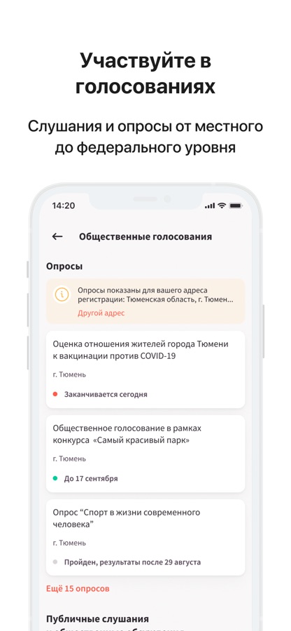 — Принимайте участие в опросах: делитесь мнением по улучшению качества работы и благоустройству, предлагайте варианты по улучшению работы местных органов власти, ЖКХ и не только