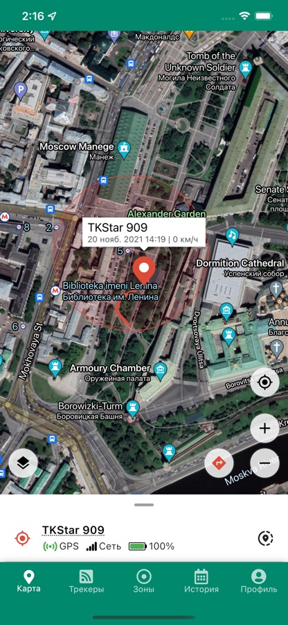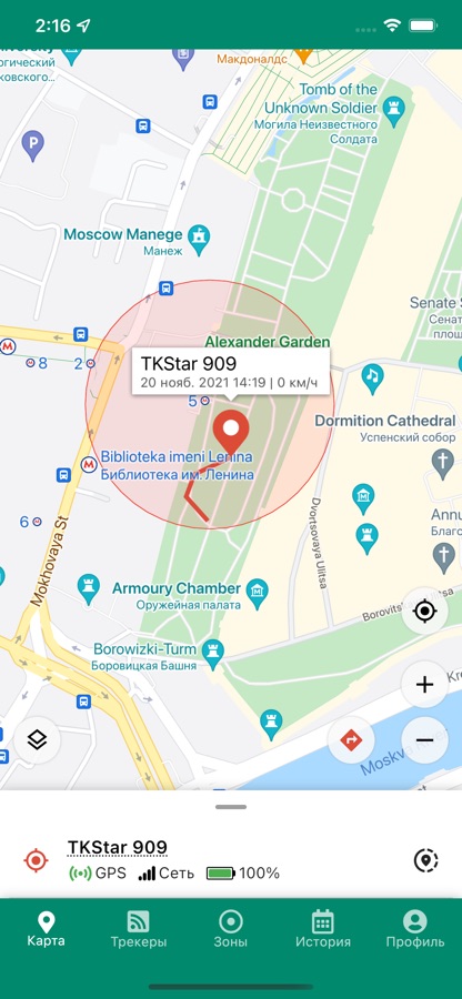 * Устанавливать разрешенную зону и получать уведомления, как только Ваш GPS-трекер покинет эту зону