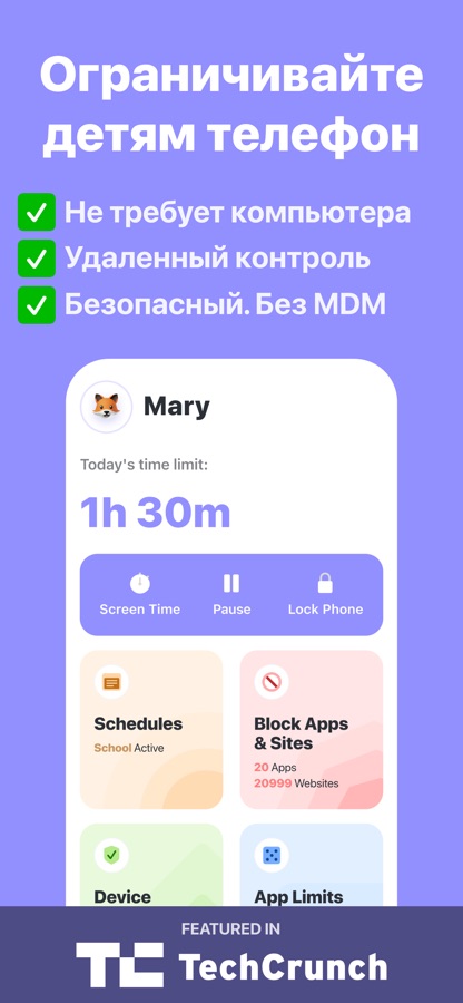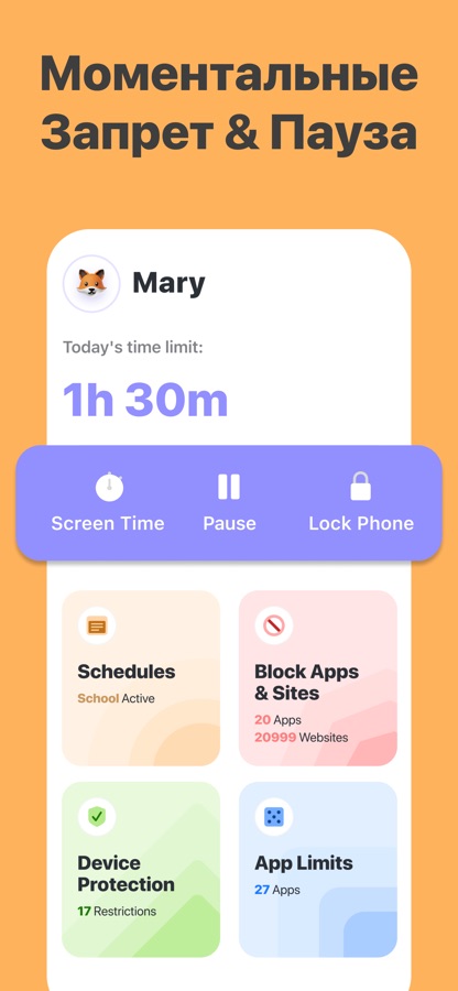 С Grace вы можете удаленно ограничивать вашим детям использование телефона и устанавливать ограничения: блокировать игры и приложения, сайты, установку и удаление приложений, покупки в приложениях и т.д. Также вы можете гибко настраивать лимиты по дням недели и автоматизировать ограничения для повторяющихся событий, например для Учебы, Сна и тд.